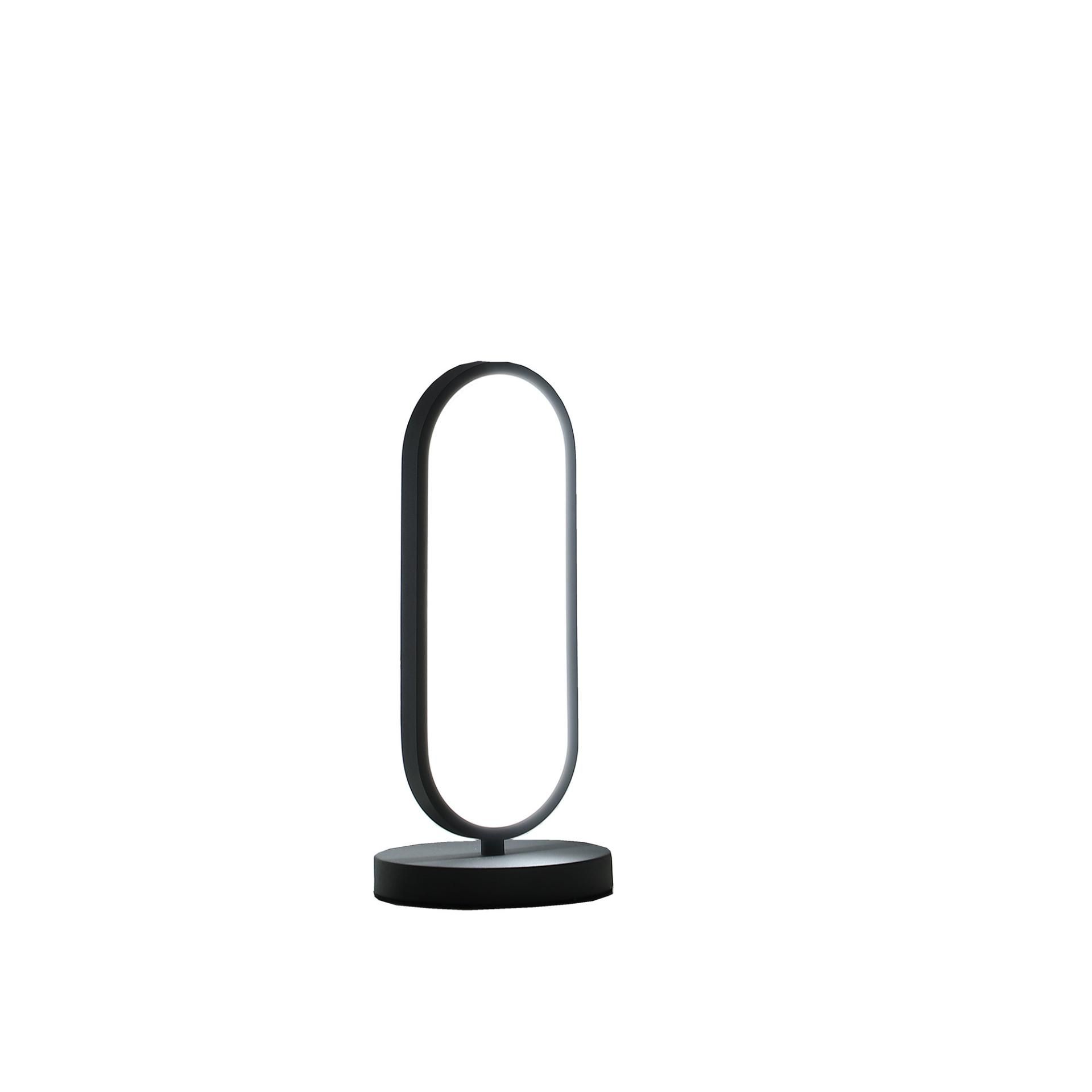 A beautiful combination of modern and industrial style, this 14 Contemporary Black Open Oval Metal Table Lamp offers a dysnamic silhouette that can blend perfectly with the interior decor of any room in your home. Made from high quality metal, this lamp features a round open-cut oval shaped lamp and round base, both with a smooth matte black finishing. This lamp uses an LED light source, lined on the inside of the oval frame, and which produces a clean and bright light that is eye-friendly. The power switch is located on the attached cord for your maximum convenience. 14 x 6.25 x 6.25