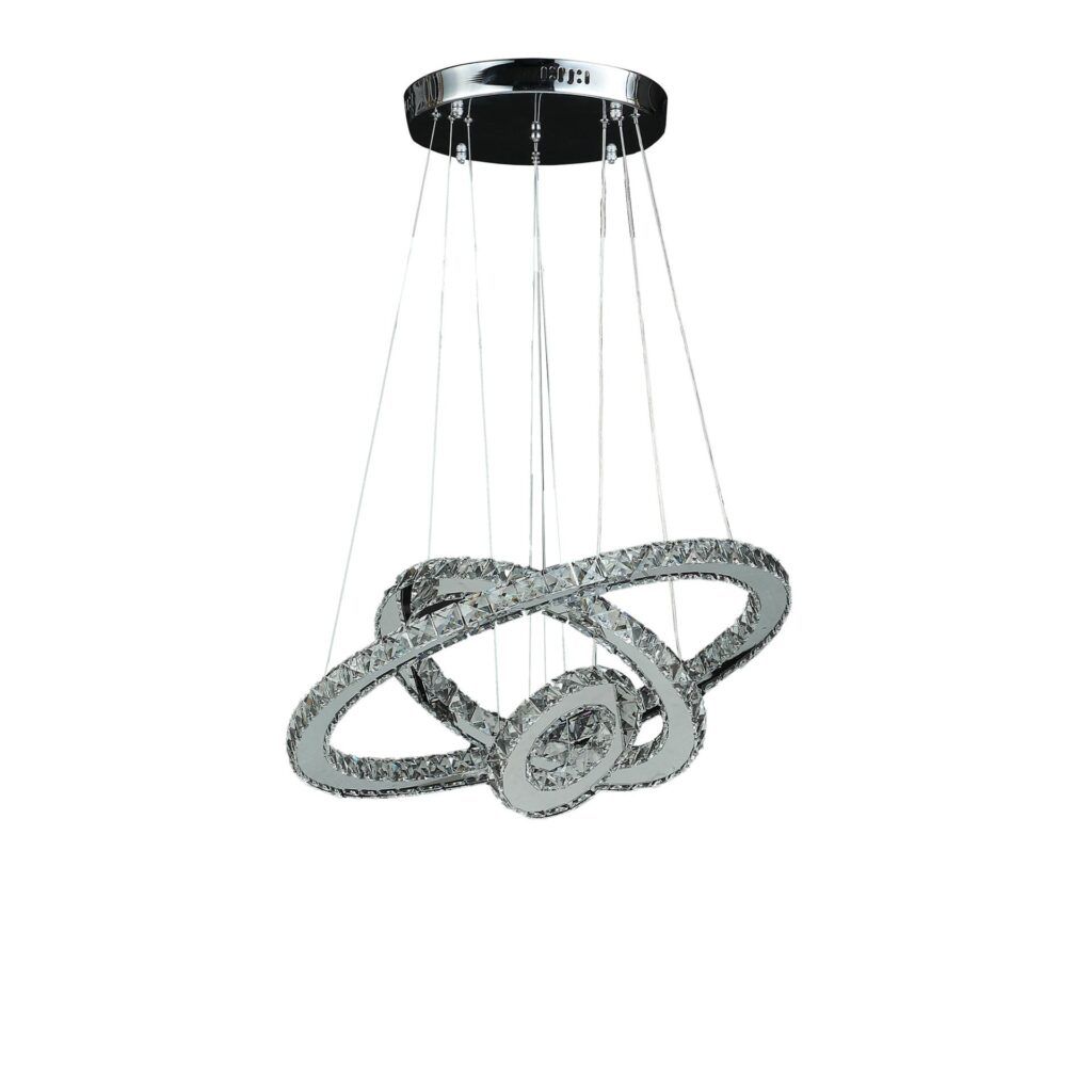 17″ Silver Chrome Geometric Asymmetrical Stacking Rings LED Chandelier