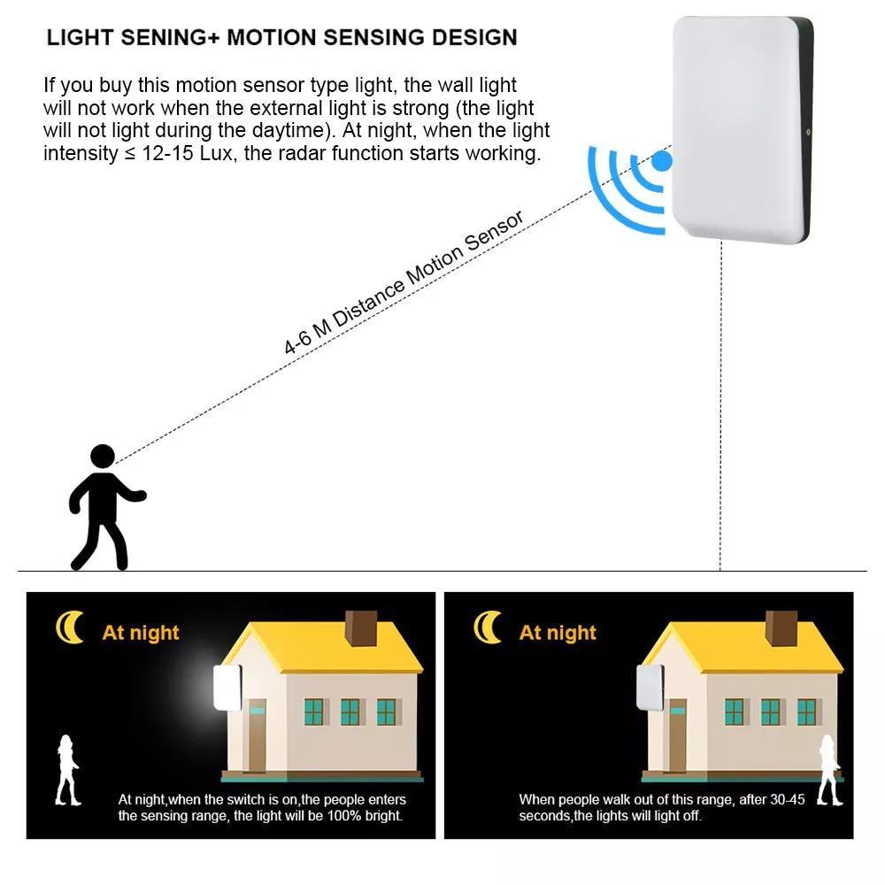 Innovative Light sensor + motion sensor solution, using sensor chip covered by 5.8 G signal, Light sensor and motion sensor are more sensitive and stable.
