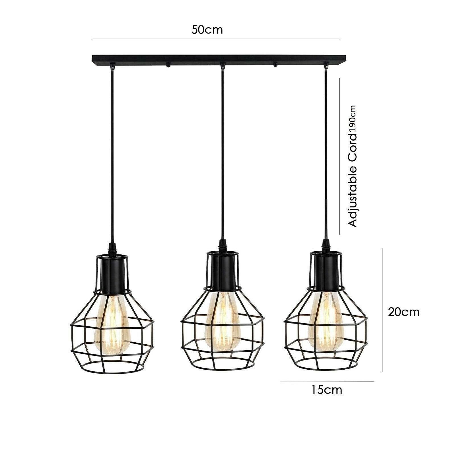 3-Lights Cage Pendant Lamp Hanging Light Fixture Black Chandelier~1170
