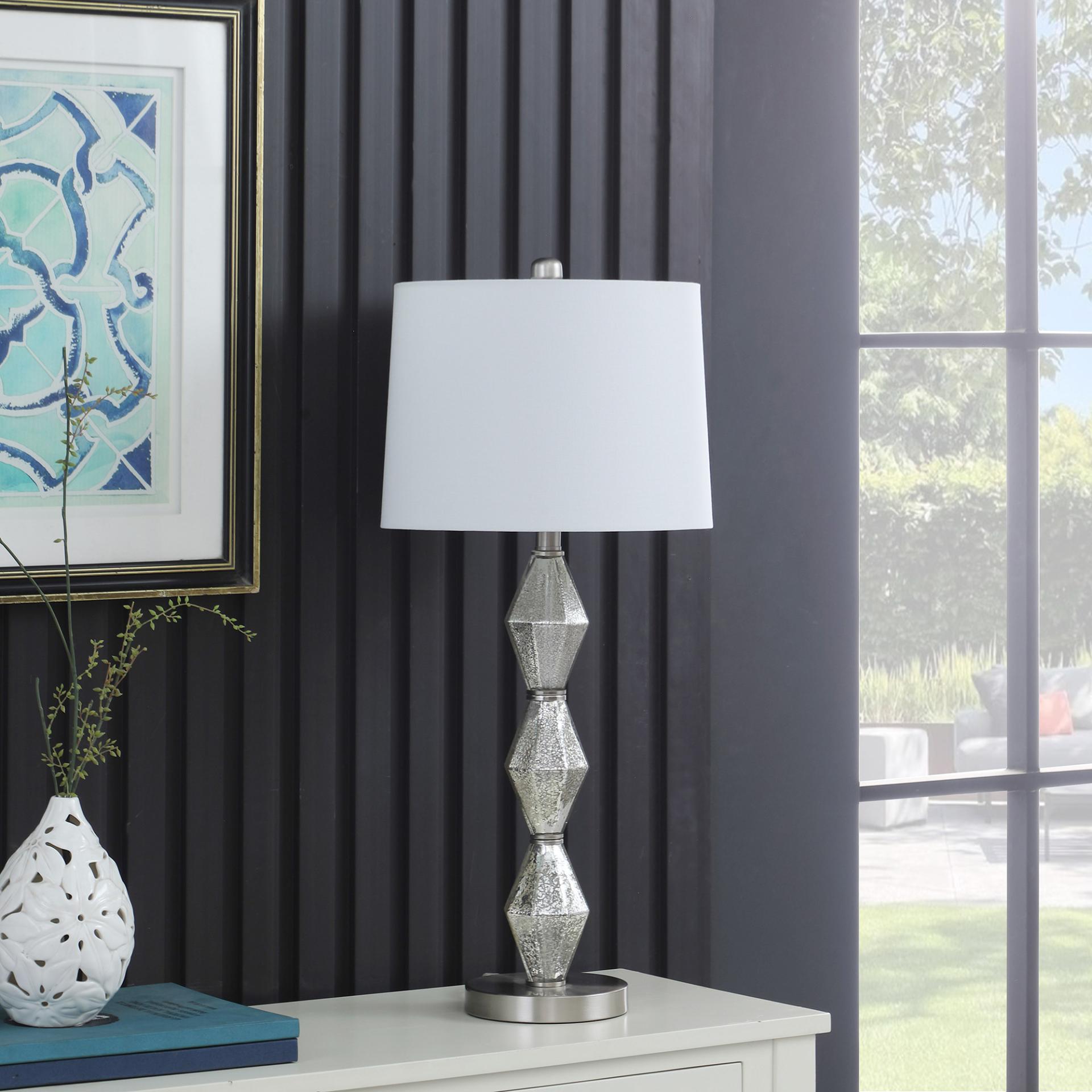 30″ Brushed Silver Geo Glass Table Lamp With White Shade