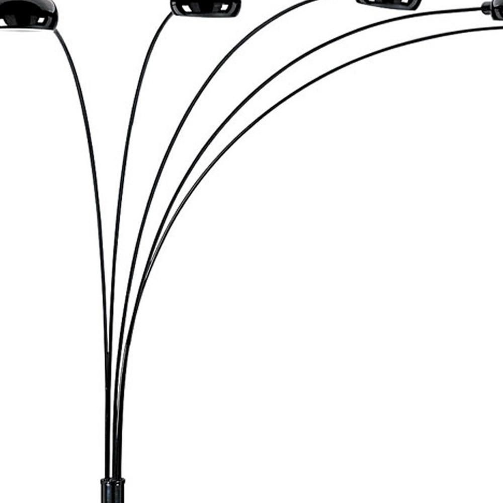 84″ Black Five Light Arc Floor Lamp With Black Dome Shade