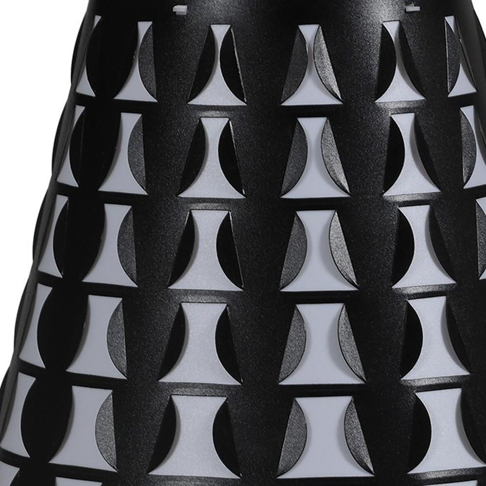 Transform any room in your home with this Black and White Metal Table Lamp. This beautiful piece has a distinctly modern design, and it sits on a clover feet metal base. The funky lampshade itself is the main attraction, with its stylish black and white geometric pattern. This whole piece is made from high quality metal and plastic, ensuring its strength and durability. 16 x 8.65 x 8.65