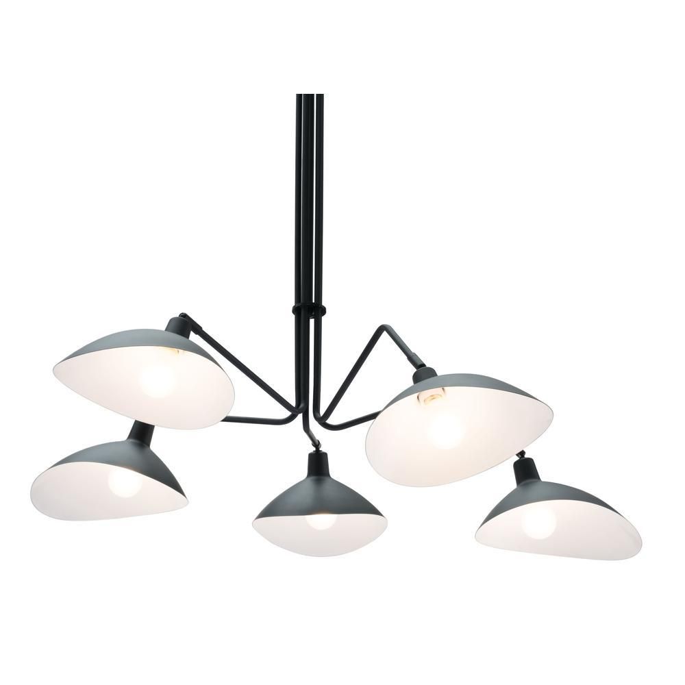 Form meets function. This modern chandelier with its attached scoop-like shades that rotate up and down or from side to side will throw light exactly where you need it. It will add intrigue to any room in your home or office space. Bulbs are not included, sold separately.