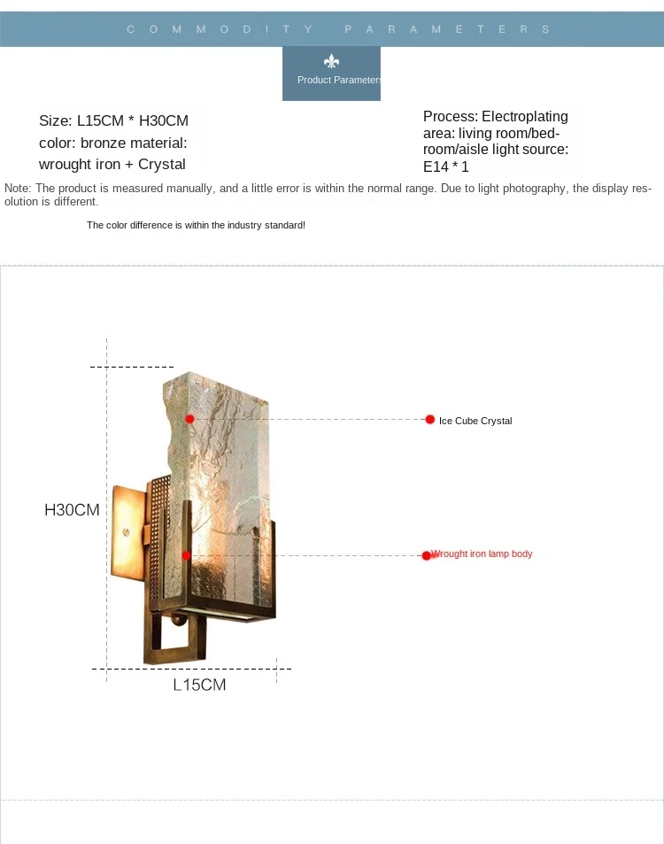 Introducing the Ice Cube Crystal Wall Light! This beautiful light is perfect for any room in your home. It is made of iron and crystal, making it both stylish and durable. The bronze color is perfect for any decor, and the light it emits is perfect for setting the mood. The Ice Cube Crystal Wall Light is also certified safe and comes with a lifetime warranty, so you can rest assured that your purchase is backed by quality and care. Order yours today!