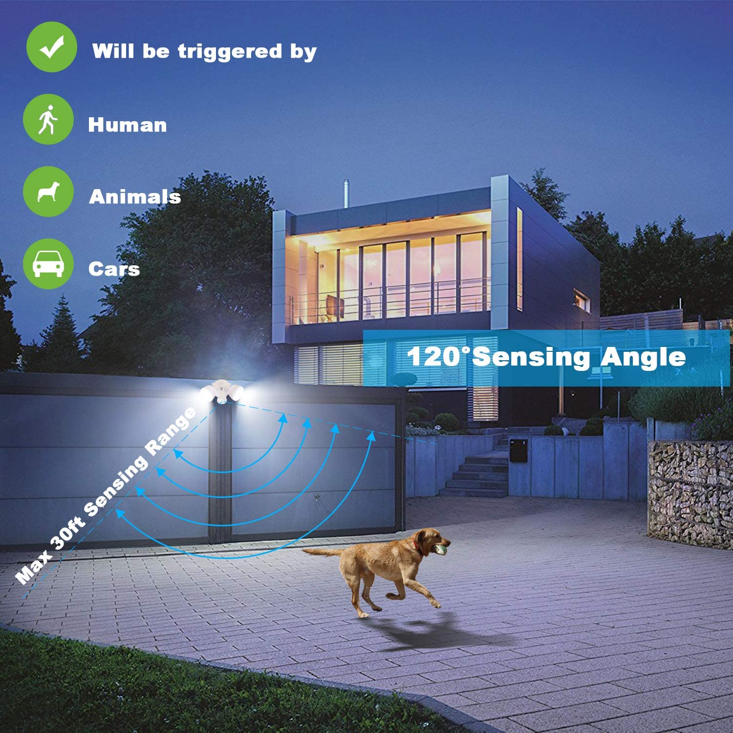 With upgraded wide-angle motion detector, solar led security light detects motion up to 26 feet within an wide angle of 120