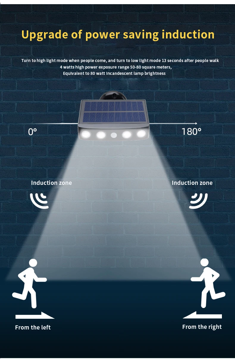 solar waterproof four-sided human body induction wall lamp is suitable for outdoor corridors, garden gates, roof terraces,courtyard wall villas, shop windows, shops, homes and other outdoor environments, no wiring, no electricity, exquisite craftsmanship and unique taste.
