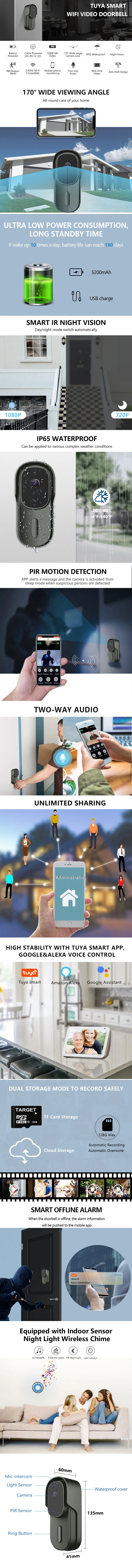 Tuya Smart Home Video Doorbell Camera Outdoor Wireless Doorbell Intercom For Home Alexa Google Security Protection Door Bell