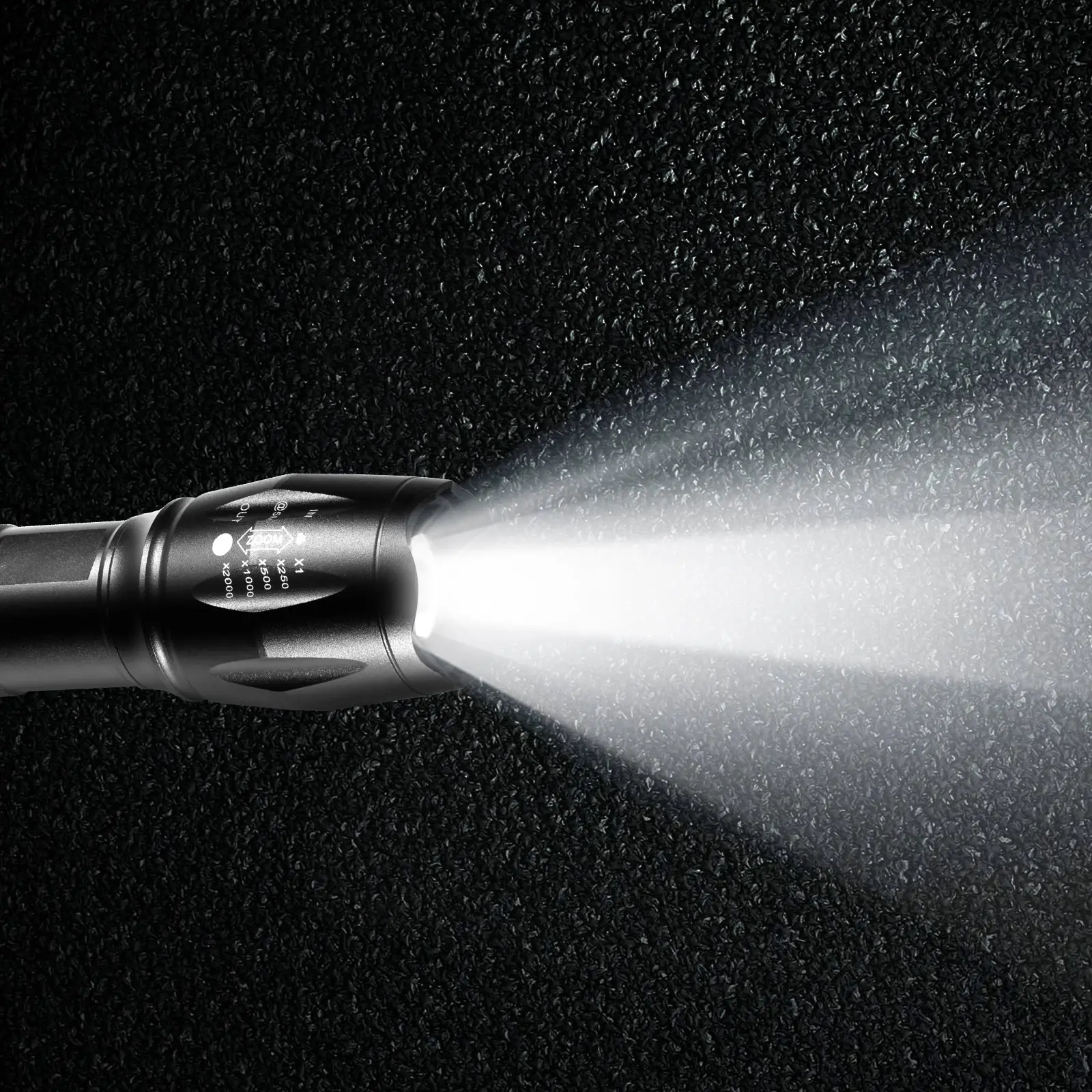 These flashlights have a convenient tail button switch for ease of use. They provide a staggering brightness of 2000 lumens powered by an efficient T6 bulb. You can energize your flashlight using three AAA batteries (4.5V) or a single 18650 battery (3.7V). Furthermore, the durable aluminum alloy construction offers lightweight handling at only 120g per unit.