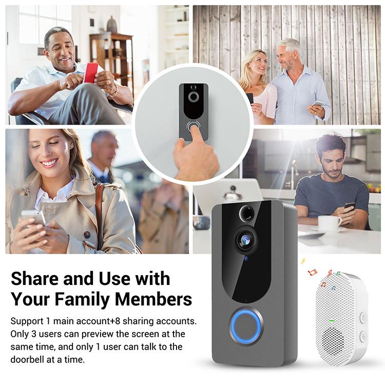 Whenever any motion is detected, our doorbell will send an alert to your mobile phone, the sensitivity is adjustable (Low, midium and high sensitivity for you to choose). Equipped with IR sensor and LED, day or night, rain or shine, the doorbell can automatically switch the light to ensure you a crystal view.